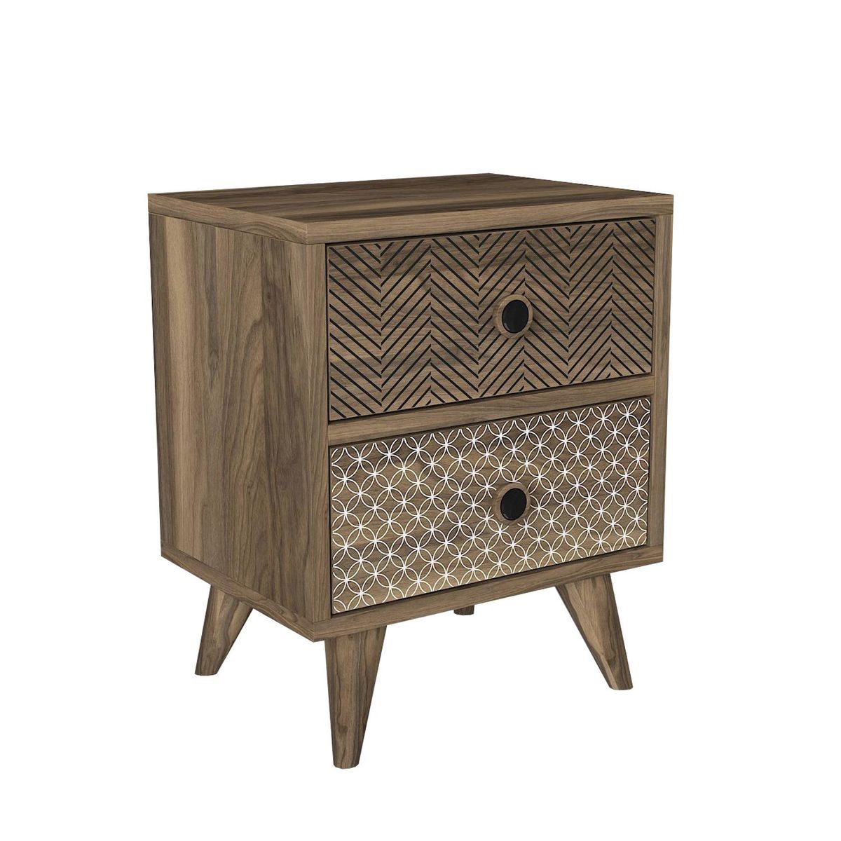 Linda Nightstand Nightstand Side Table Pedestal With Two Drawers – Walnut