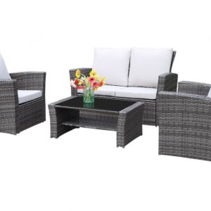 Relax on your patio this season with our 4 piece wicker furniture set.